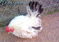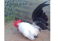 Chabo Siro (gelb-weiß mit schwarzem Schwanz, gelockt und glatt)