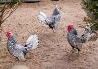 sondern einmalig in der Rassegeflügelzucht. Die Hähne sind