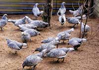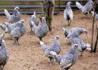 Hühnern sehr fluggewandt sind und gerne in Bäumen klettern. Sie werden