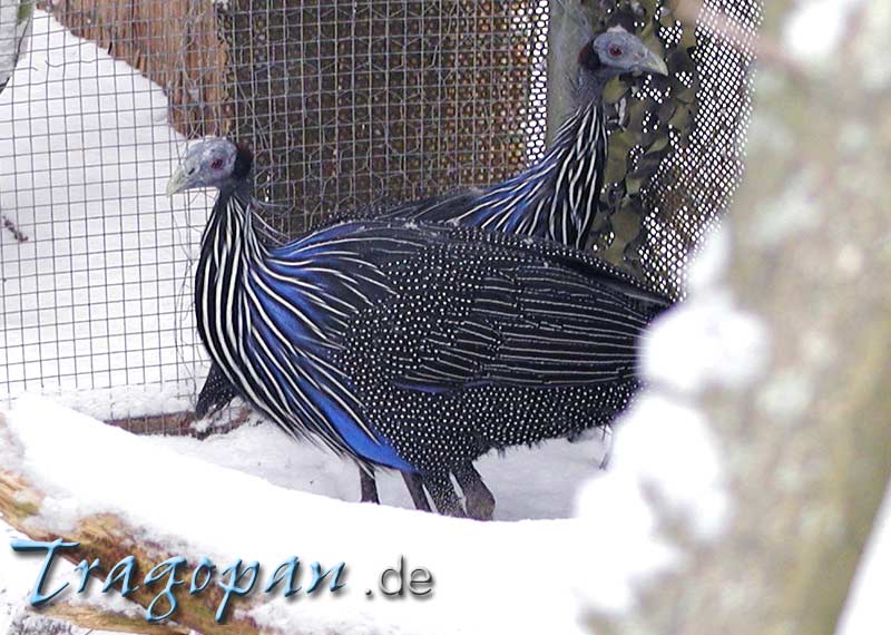 ein ungewohnter Anblick, Geierperlhühner im Schnee