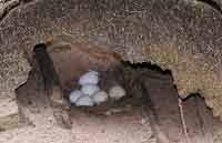 Das Gelege besteht aus 12-14 cremweißen Eiern die von der Henne in 22-23