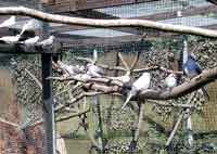 Pfaufasanen, Virginia Baumwachteln, Harlekinwachteln und Kaptauben.
